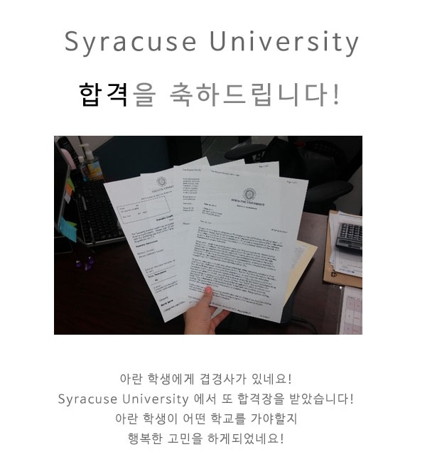 [합격장] Syracuse 대학교 합격을 축하드립니다~